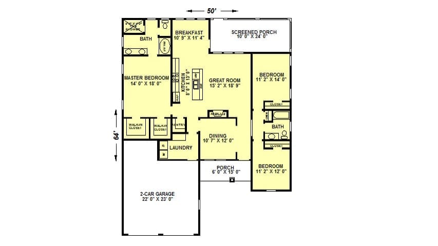This house features a split bedroom design with an open Great Room/Kitchen. Also included is a formal Dining Room which could be omitted if needed. The large Master Suite includes his and hers Closets and a Master Bath with tile shower and soaker tub.