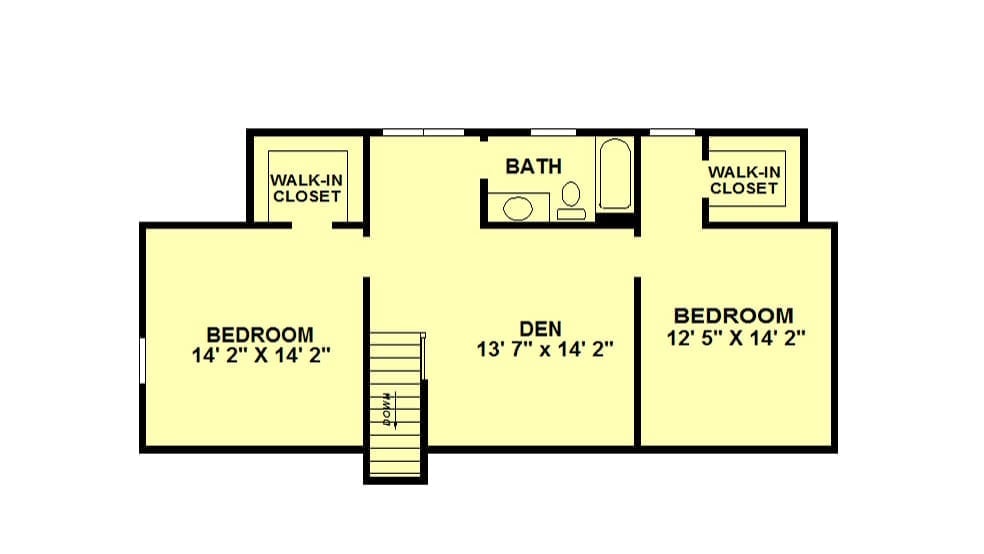 This house features a separate Great Room and Kitchen Area for hiding those dirty dishes. A large Laundry with a folding table leads to a Screen Porch out back. The Master Bedroom includes a large Bath with both a Tub and a Tile Shower plus a roomy Walk-in Closet. Upstairs you will find 2 additional Bedrooms separated by a common Den and another full Bath. At only 35′ deep including porches, this house is perfect for a sloped or shallow lot.